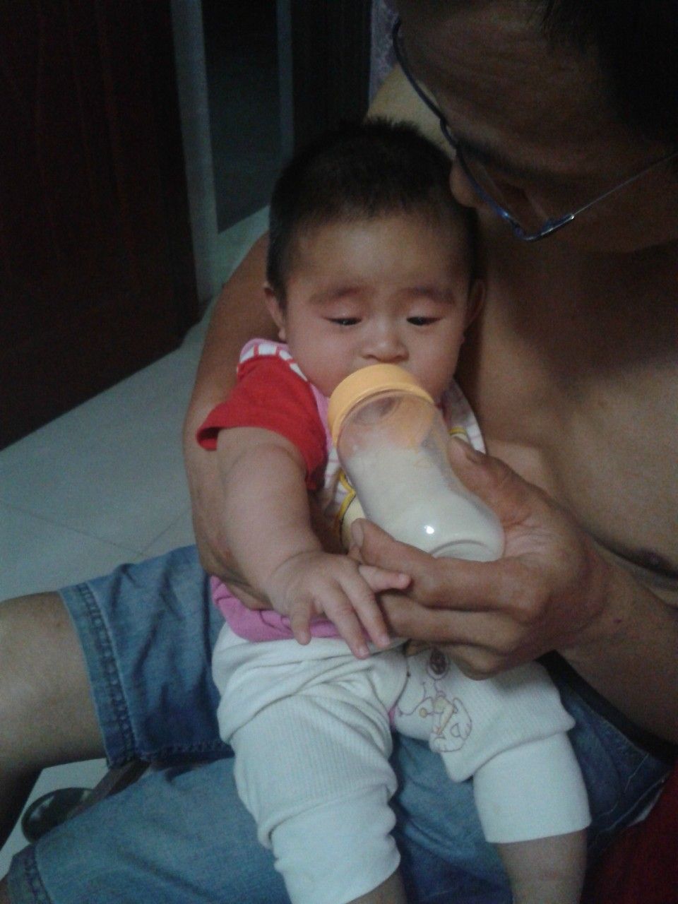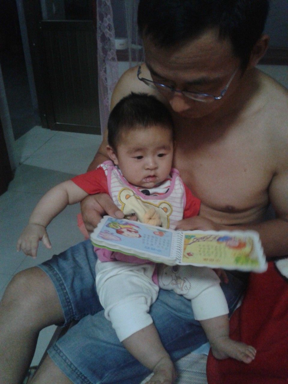 宝宝心语:娃他爸每天白天上班~~晚上才回来~回家就带娃玩~给娃洗澡~把尿~换纸尿裤~~总是说忙碌了一天~回家看到宝宝~什么烦恼都没有了