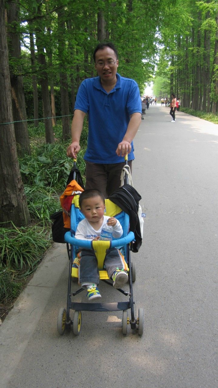 外出时推车肯定是宝爸,宝爸是晨晨的守护星。