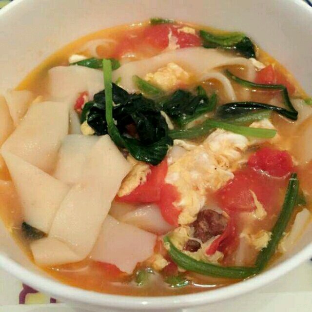 早餐是西红柿鸡蛋菠菜面,方便简单又好吃,西红柿含有维生素C,鸡蛋含有蛋白质,菠菜含有铁,一起搭配既营养、好看又好吃美味!