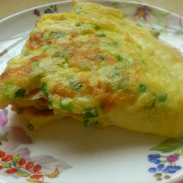材料 面粉一小碗、鸡蛋3只,葱花香菜碎一小碗,咸盐,花椒面适量、色拉油2小匙,清水或者牛奶适量。 做法 做法一 1、鸡蛋打散,加入牛奶或者清水调匀,加入剩下材料混合成流动性很好的面糊(如果太稠可以加水调适,太稀可以加面粉调适)。 葱花鸡蛋饼 2、面糊调好后稍稍放置一会就可以开始摊饼子了。不粘锅最好,一般铁锅也行,只是需要擦点油,不要粘锅就好了。 3、锅微热后,用勺子舀面糊,倒在锅里然后拿着锅慢慢的转开面糊,一面凝固以后再翻个面,煎成微黄即可。 做法二 材料:鸡蛋,葱花,面粉,盐,香油。 1、葱花、鸡蛋、面粉混合,加入水拌成可流动的糊状。 2、加盐调味,再加少许香油拌匀。 3、饼铛内倒少许油,倒入面糊,待一边凝固后翻个面,烙熟即可。 4、电饼铛的话就不用翻面 注意 1、使用的量具为125 ML的黑色量勺,面为1勺,水为2勺,蛋面糊约为1勺。 2、蛋面糊需要边用边搅拌,否则容易沉淀。 3、煎制过程中需从边上用小勺顺时针滴入一些油,边放边旋转饼,使饼受油均匀,这样煎出的饼口感软嫩,老少皆宜。 鸡蛋是必不可少的营养,复杂的早餐我也不会做!