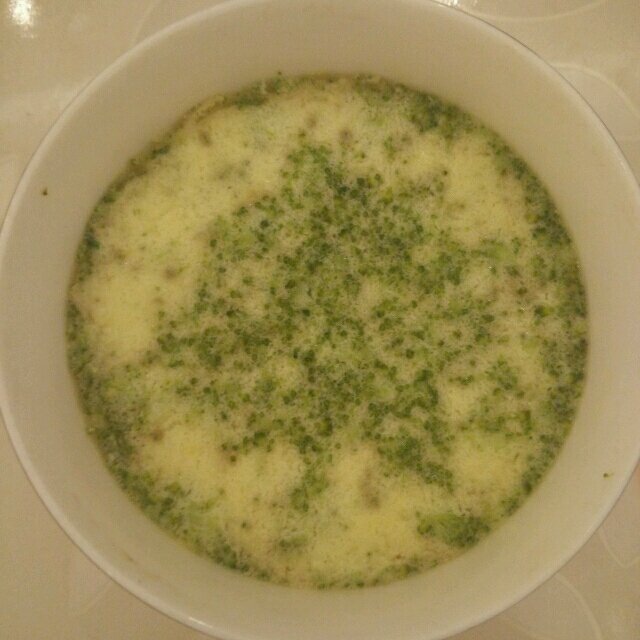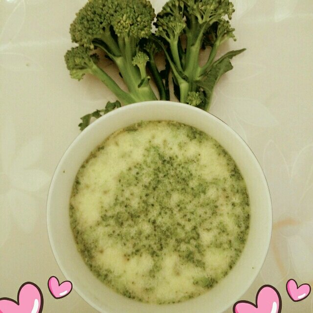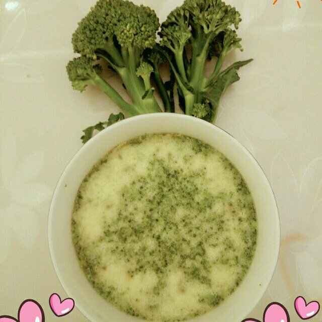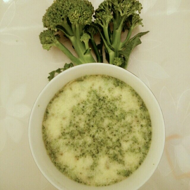 宝宝今天的营养早餐是西兰花鸡蛋羹。 西兰花富含胡萝卜素,维生素A,维生素C,以及钙,多种等矿物质,其中维生素A有护肤,明目和润肺作用。蒸鸡蛋羹的营养价值,健脑益智,美容护肤。宝宝吃了聪明伶俐,健康美丽!宝宝很喜欢吃!