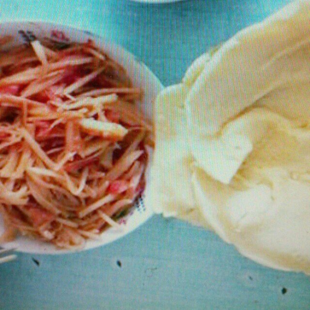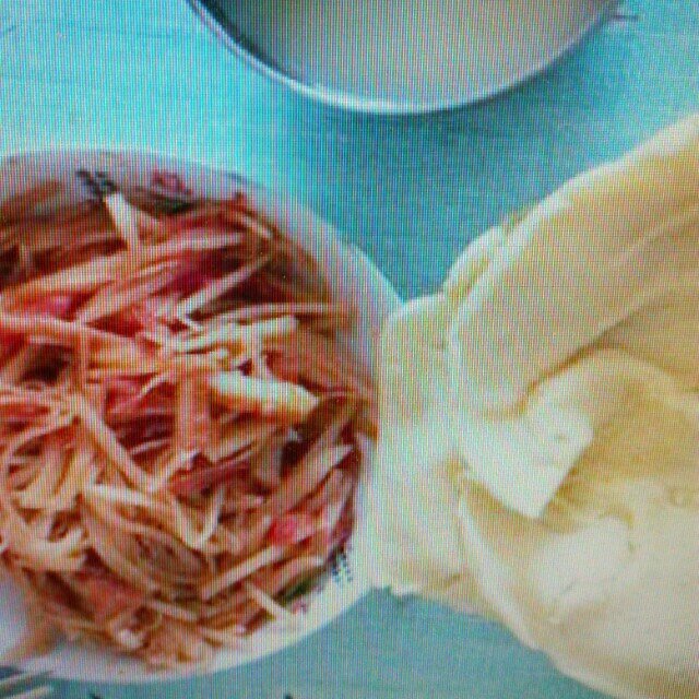 早餐今天吃的土豆丝卷饼,小米粥,宝贝的最爱