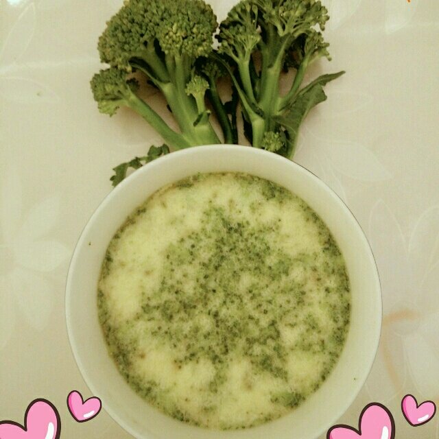 宝宝今天的营养早餐是西兰花鸡蛋羹。 西兰花富含胡萝卜素,维生素A,维生素C,以及钙,多种等矿物质,其中维生素A有护肤,明目和润肺作用。蒸鸡蛋羹的营养价值,健脑益智,美容护肤。宝宝吃了聪明伶俐,健康美丽