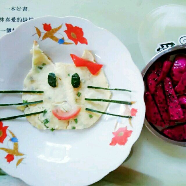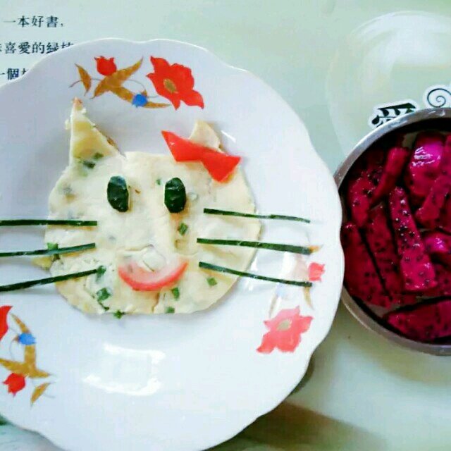 凯蒂猫鸡蛋饼+红心火龙果