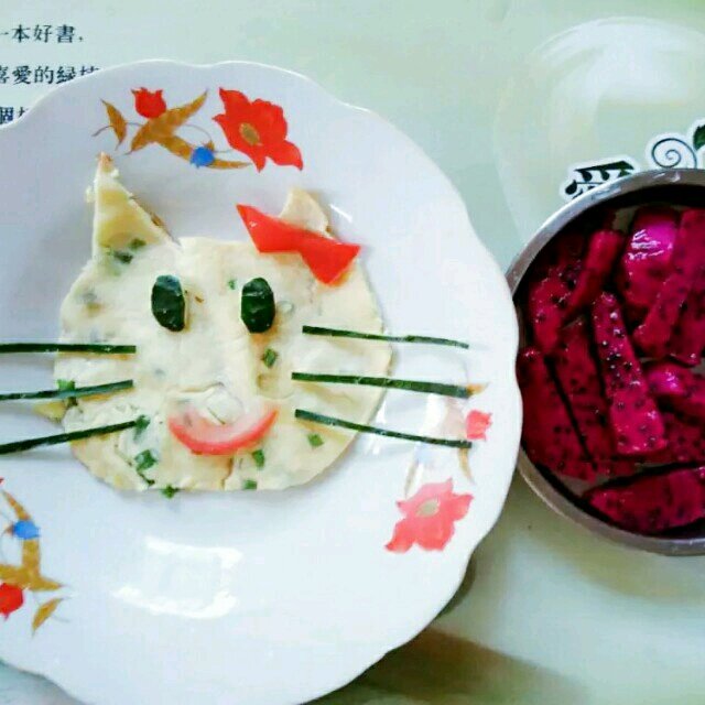 凯蒂猫鸡蛋饼+红心火龙果