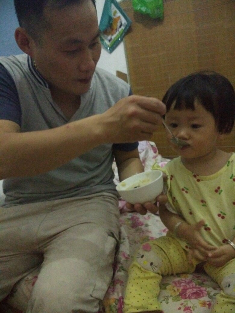 #蓝瓶超人为奶爸点赞#宝爸喂宝宝吃饭,宝宝很配合宝爸乖乖的吃饭。😃😃