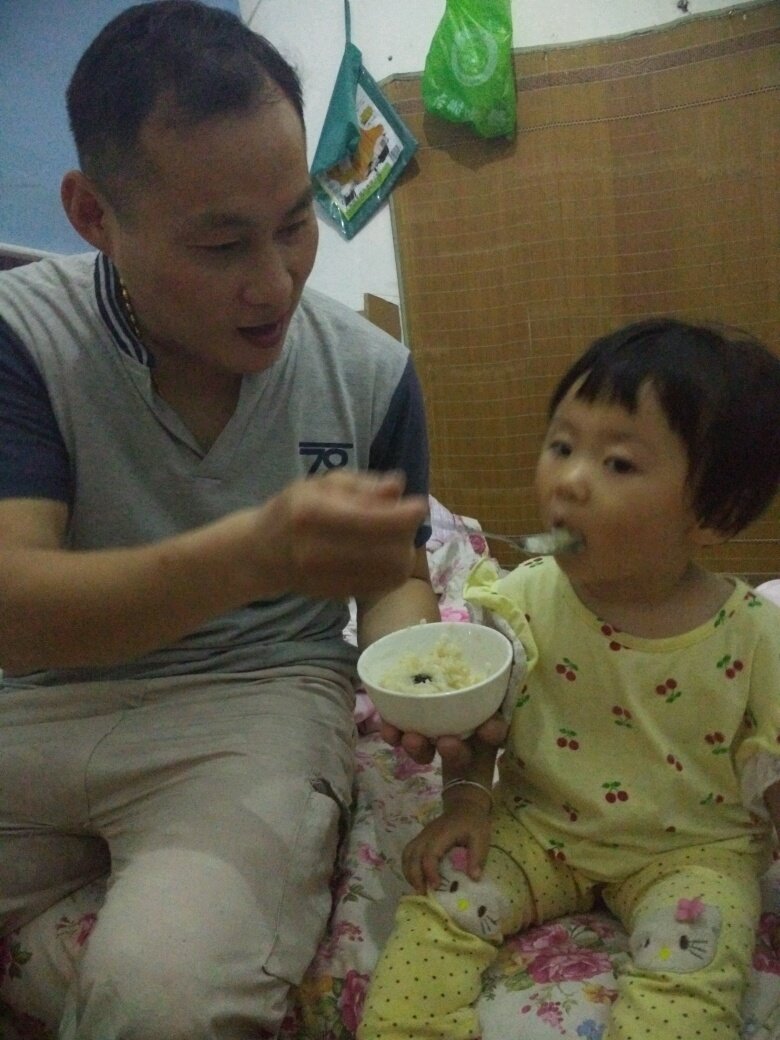 #蓝瓶超人为奶爸点赞#宝爸喂宝宝吃饭,宝宝很配合宝爸乖乖的吃饭。😃😃