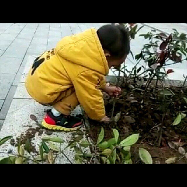 宝贝2岁零8个月了。前几天发现了宝贝会把小区的倒了树苗重新扶直后加上泥巴种好,当时拍的小视频。突然看见哈药环保小能手的比赛。才去朋友圈截图来参加比赛