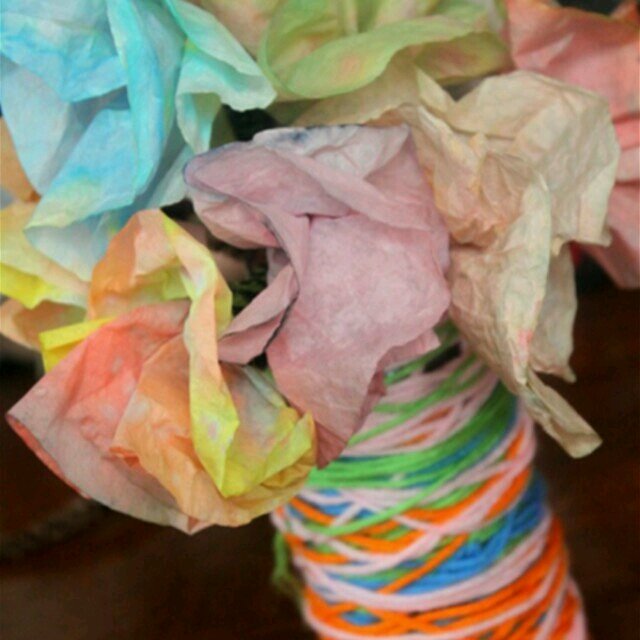 小蓝瓶还可以每个插一枝花,九个用五颜六色的毛线捆绑起来,也是很漂亮的哦!
