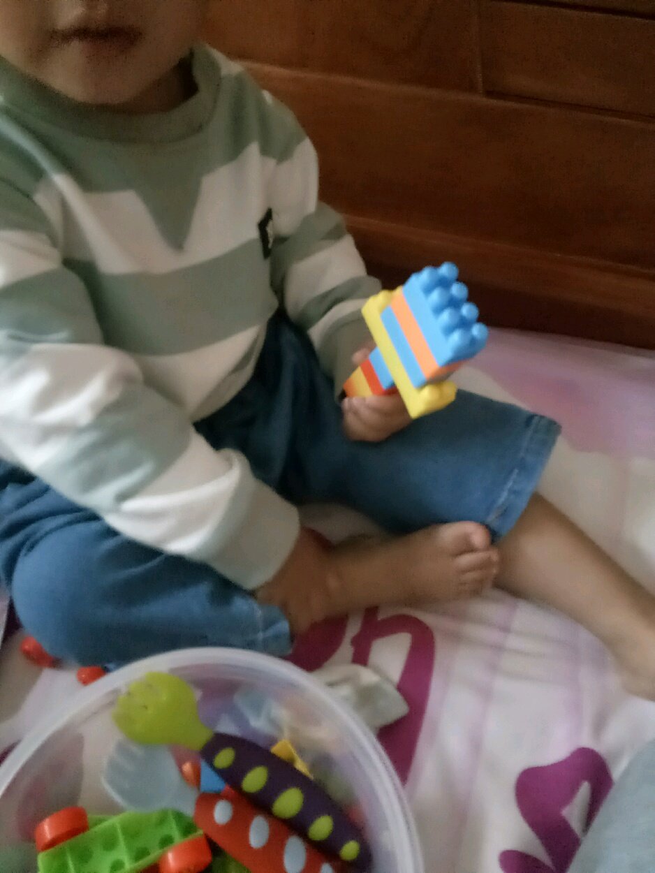 #成长需要全面发展,我为宝宝这样助力#从小宝宝就爱动,爱调皮,所以我喜欢培养宝宝的动手能力,偶尔也让宝宝看看书,只是对于18个月的他来说,对玩比较感兴趣。玩中学,就这样开始了,本来打算给宝宝买木质的积木,让他堆着玩,结果下单没看清,买成了要对空按的塑料积木。本以为宝宝玩不了,没想到他竟然自己弄了块“雪糕”,估计是知道夏天了吧。春季是补钙和锌的黄金期,钙铁锌我选三精蓝瓶的,因为吸收好,补得快,宝宝小时候缺钙,一盒就补过来了。适合宝宝的就是最好的,所以补充钙铁锌,我就选三精蓝瓶的!在宝宝全面发展的过程中,我只负责保证他的营养和人身安全,其他的就看他自己的,不干预的指导是最好的支持!蓝瓶,陪我一起见证宝宝的成长!