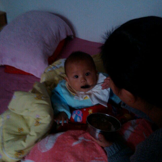 我快9个月了,我在慢慢长大,我现在已经可以吃半碗糊糊面了,我很棒吧