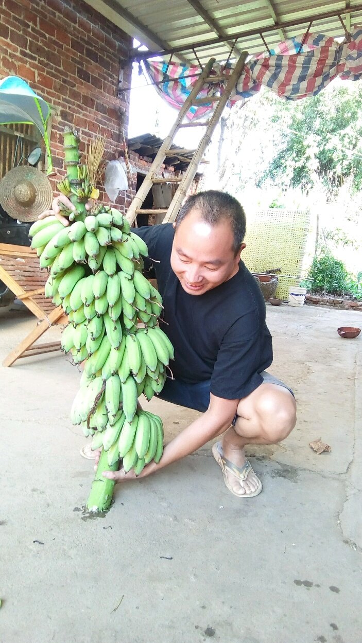 #蓝瓶陪你健康出行,秀出你的愉快假期#假期不添堵,我们回老家去吃土特产,刚从树上砍下来的八蕉,有没有垂涎欲滴啊?